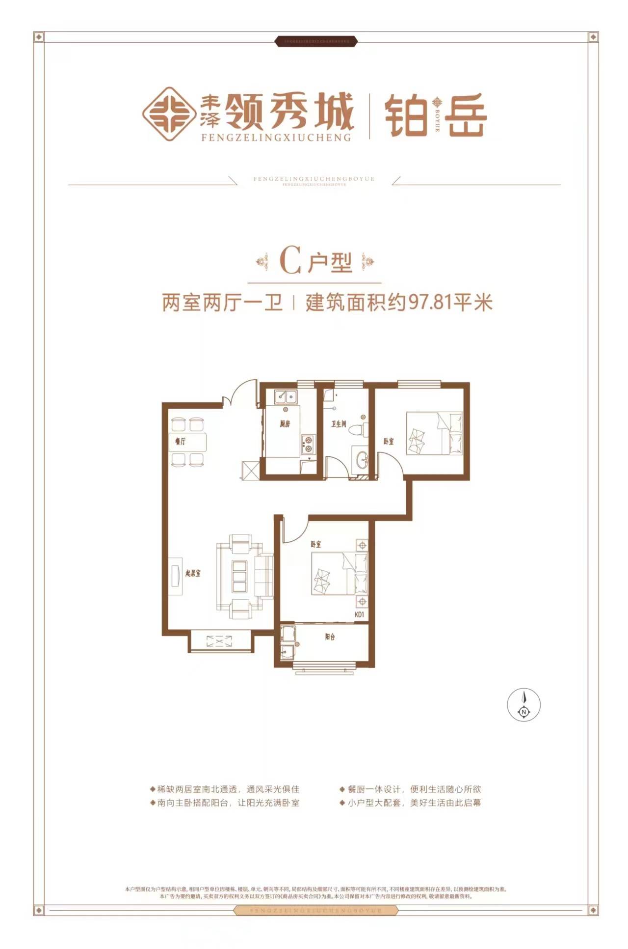 建筑面积: 97㎡(2房2厅1卫)