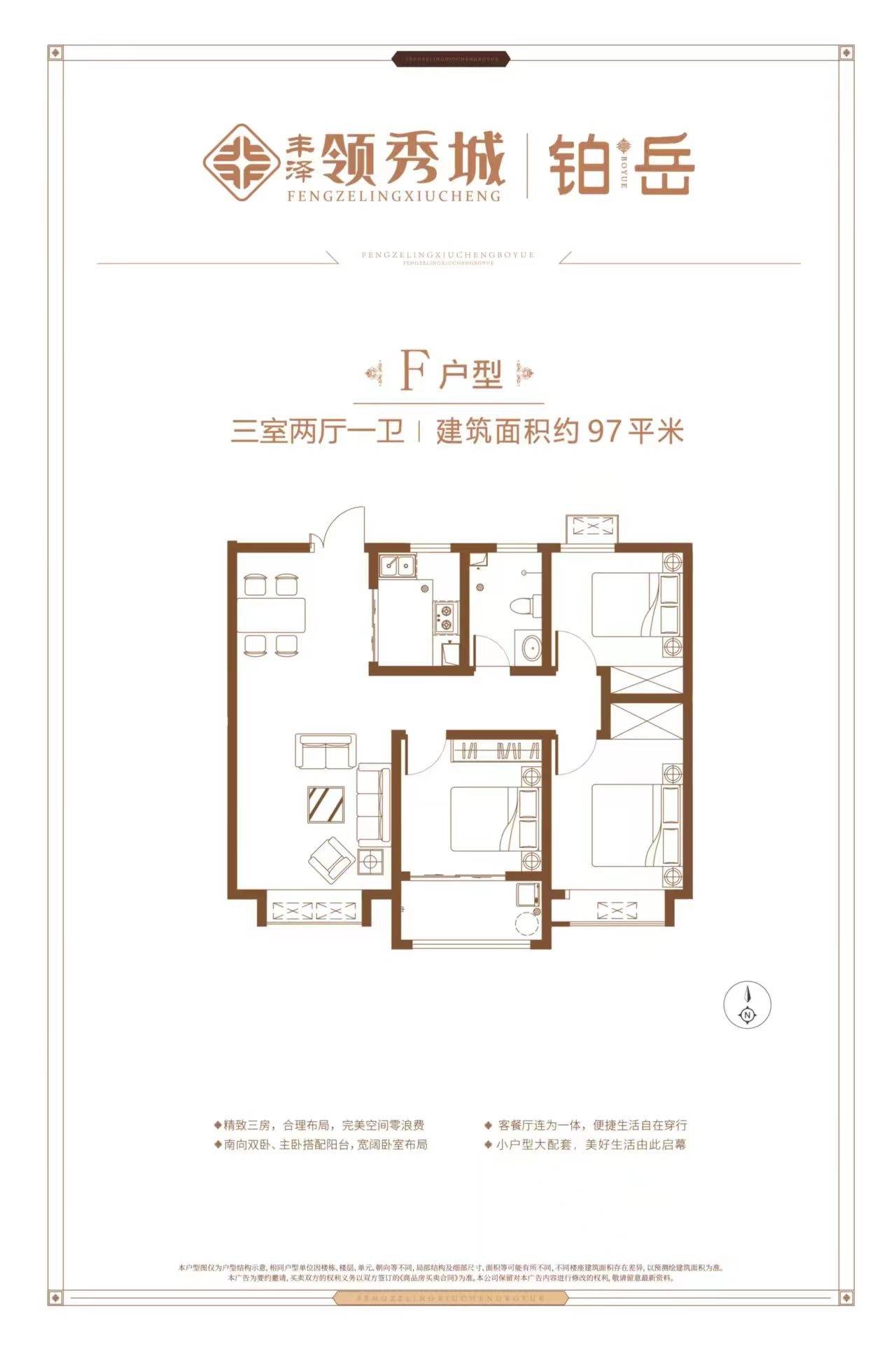 建筑面积: 97㎡(3房2厅1卫)