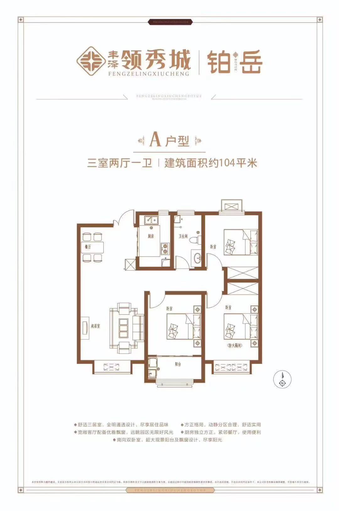 建筑面积: 104㎡(3房2厅1卫)